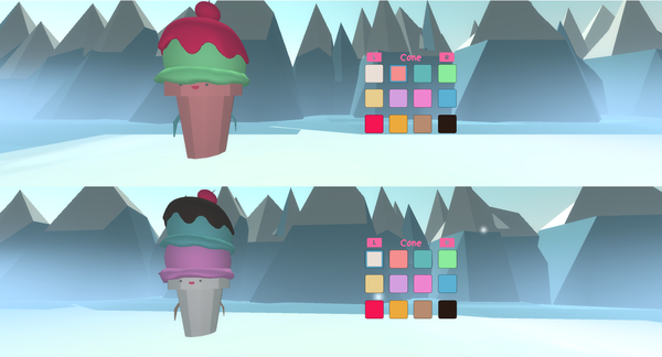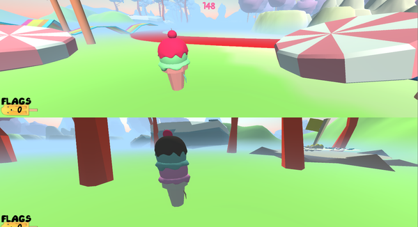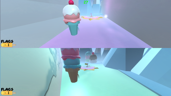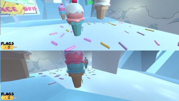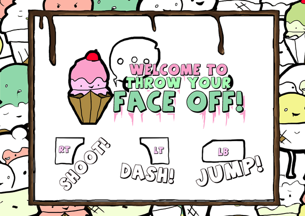 Throw Your Face Off is a split-screen shooter/capture the flag game where each player takes control of an Ice Cream and tries to capture as many areas as possible before the time runs out. Throw your Ice Cream at flags to claim an area or at your opponent to slow them down.